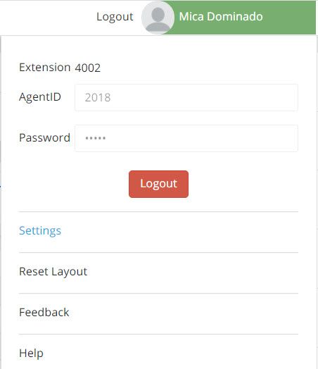 To access Settings widget, click the agent's name to display the agent menu, then click Settings. As a reminder, the agent settings were on the left-side navigation bar in CT Suite Classic.