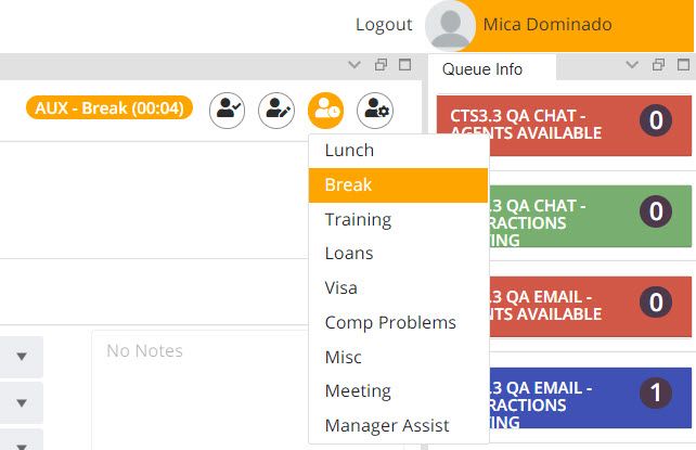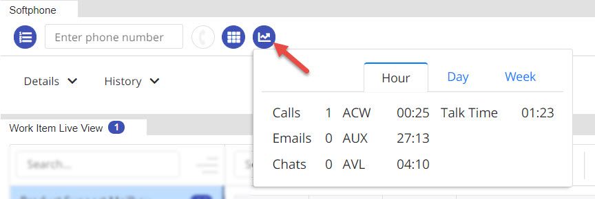 To view My Stats, click the button located in the Softphone panel. In Flex, My Stats won't remain visible when you click away to other widgets. This is to make more space in the dashboard screen.