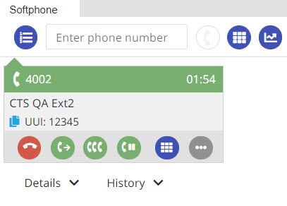 When the agent transfers or conferences a call, the value entered by the agent in the UUI field should pass through to the recipient. If the recipient transfers or conferences the call, the UUI input will be prefilled in the Transfer or Conference window.