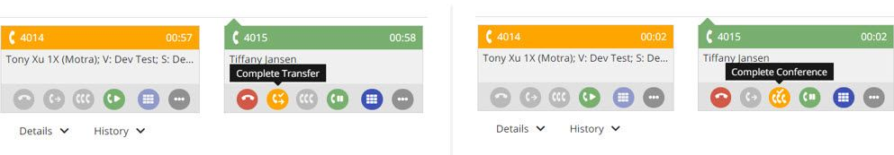 The sequence for completing a transfer or conference has changed in CT Suite Flex layout. The updated sequence is more closely aligned how it would function on the desk phone.